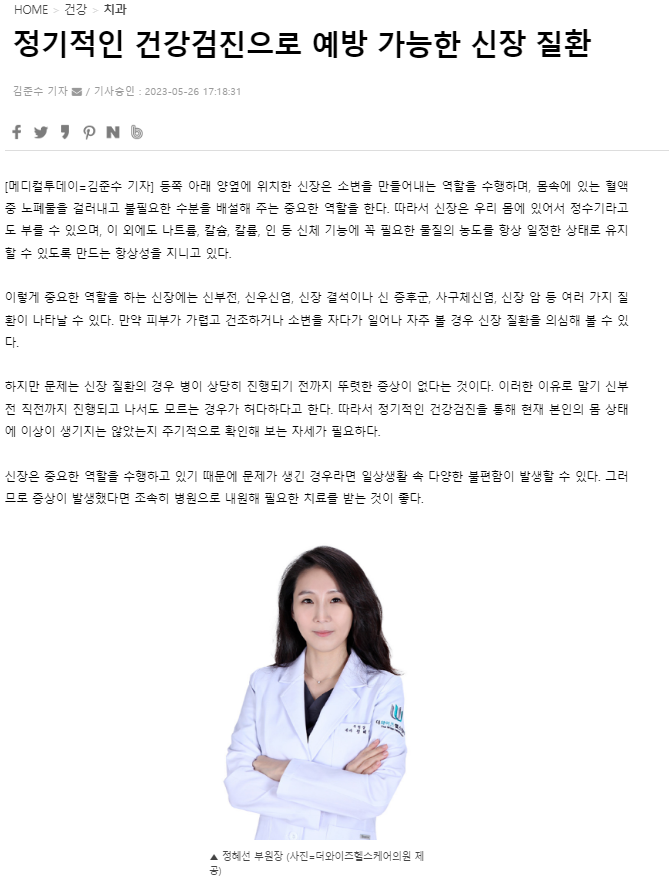 더와이즈헬스케어의원 정혜선 부원장님 신장 질환 관련 언론 인터뷰!