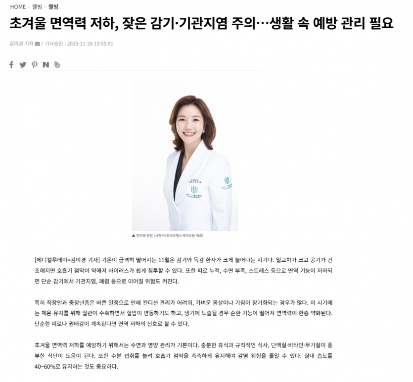 더와이즈헬스케어의원 전지혜 대표원장님 면역력 관련 인터뷰!