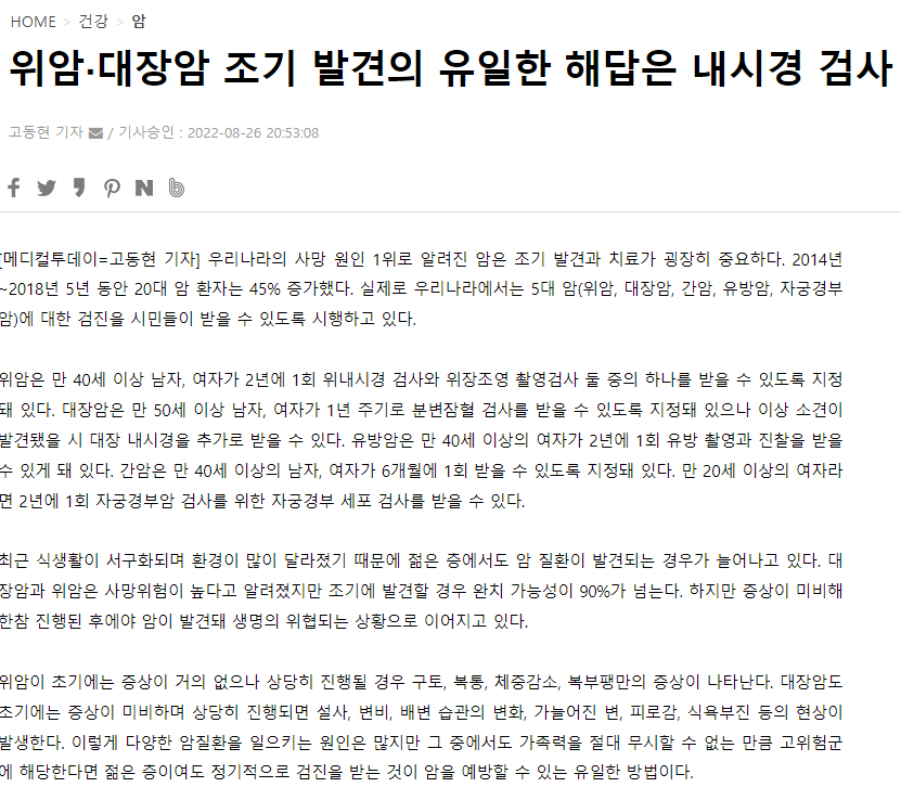 위암‧대장암 조기 발견의 유일한 해답은 내시경 검사 언론 인터뷰 소식 안내!