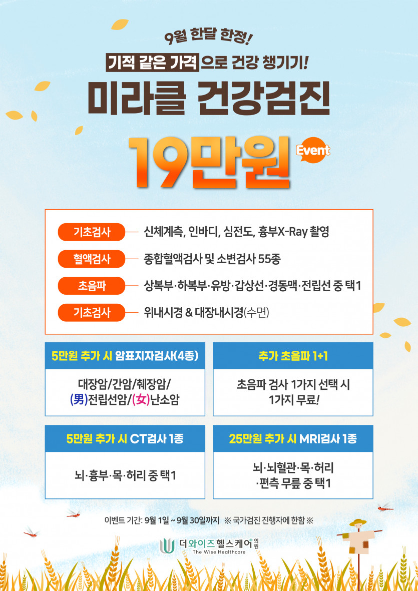 더와이즈헬스케어의원 9월 한정 미라클 건강검진 이벤트!
